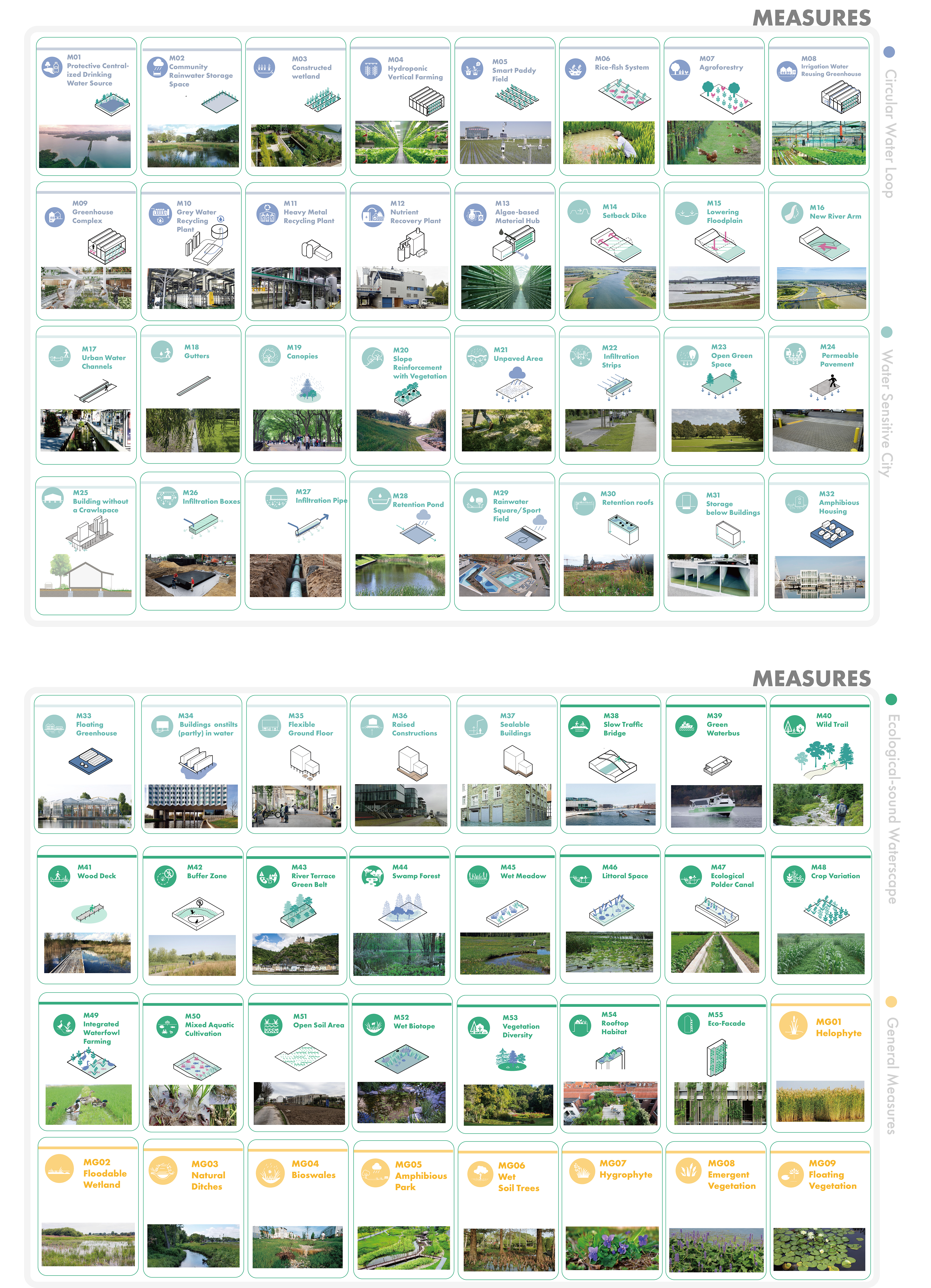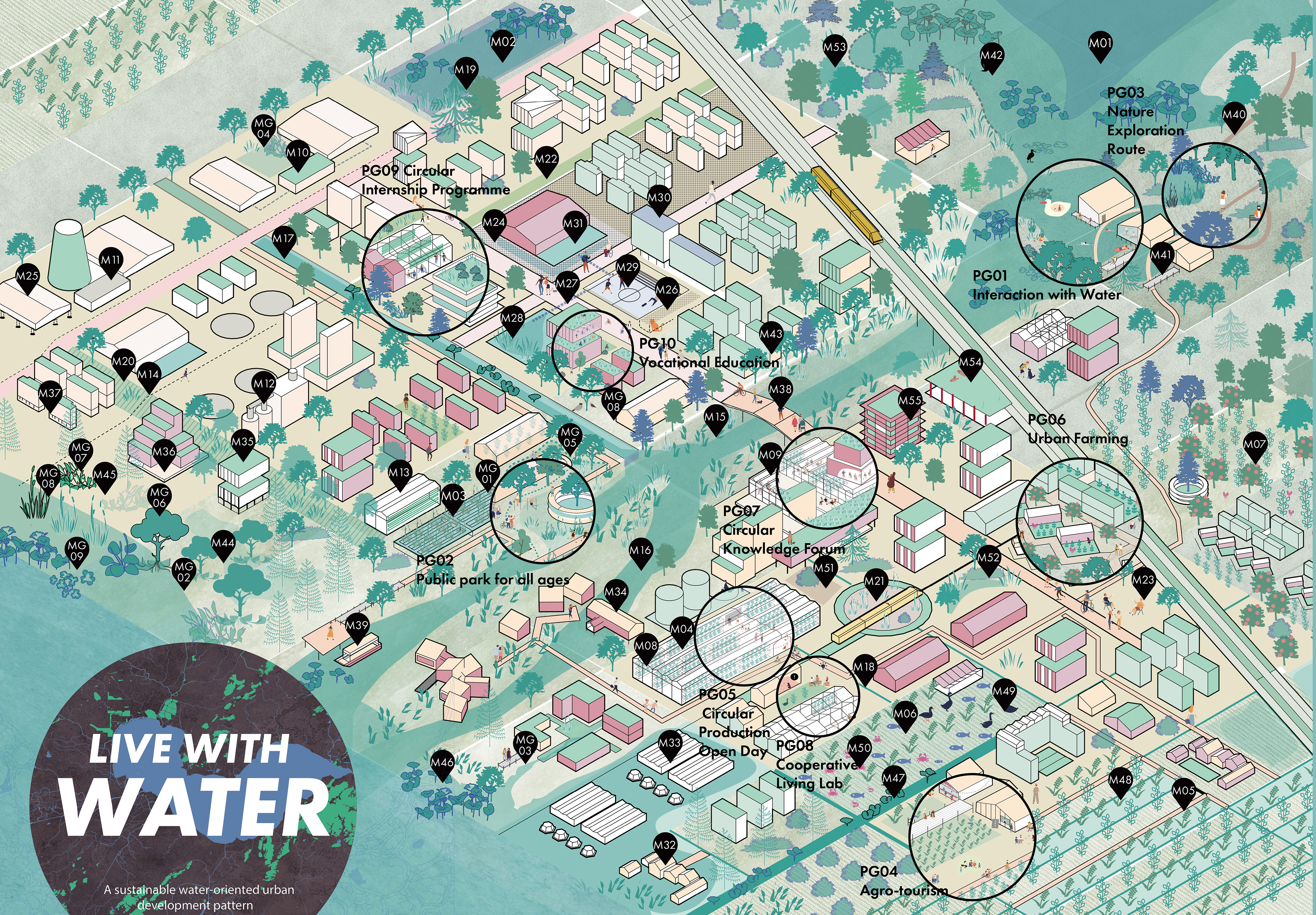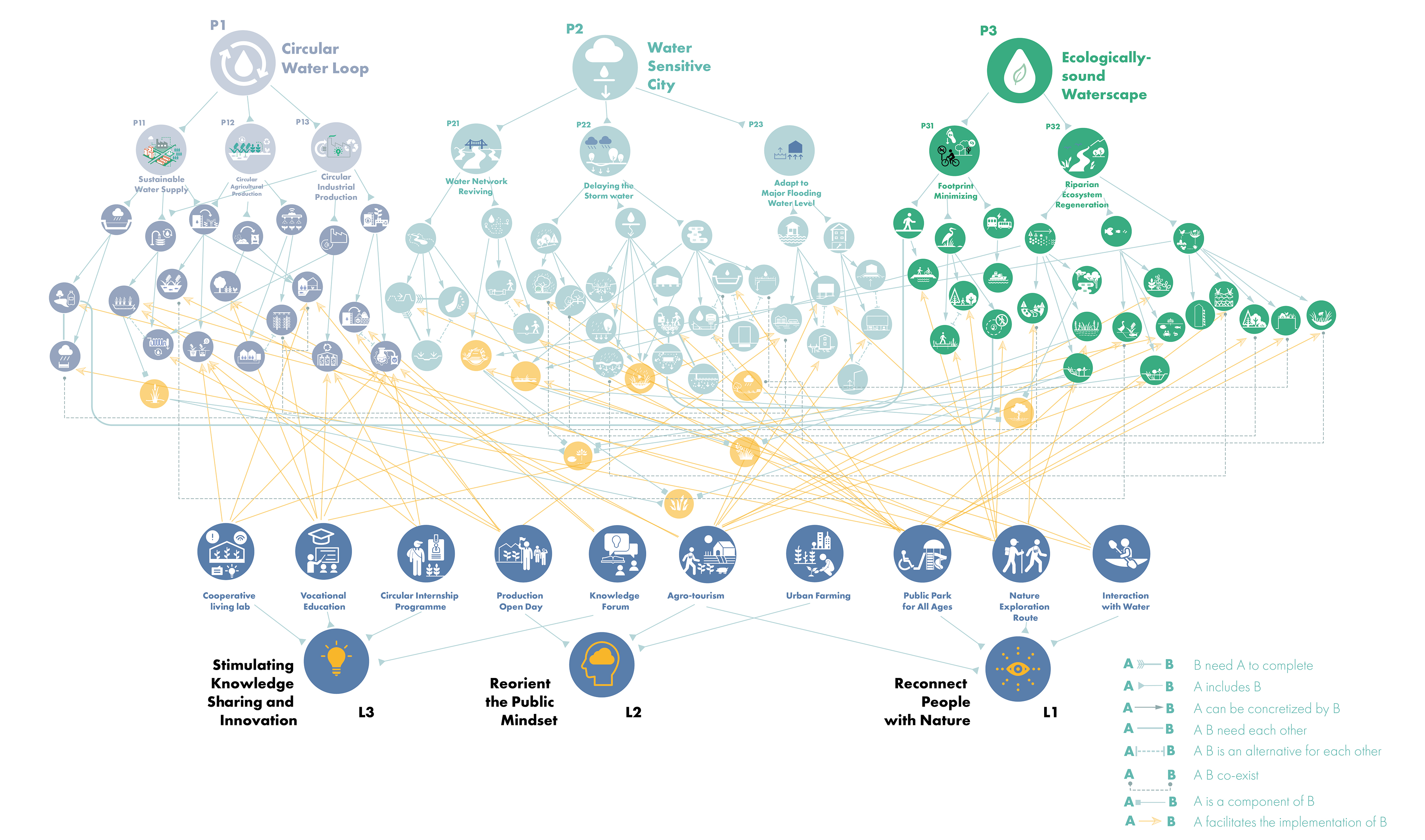 Further implimentation of the patterns can be seen in the pilot project The 2030 Vision for Shangpai Town , where a future water-oriented built environment is imaged on both district-scale and block-scale following a co-creation via this pattern language.
