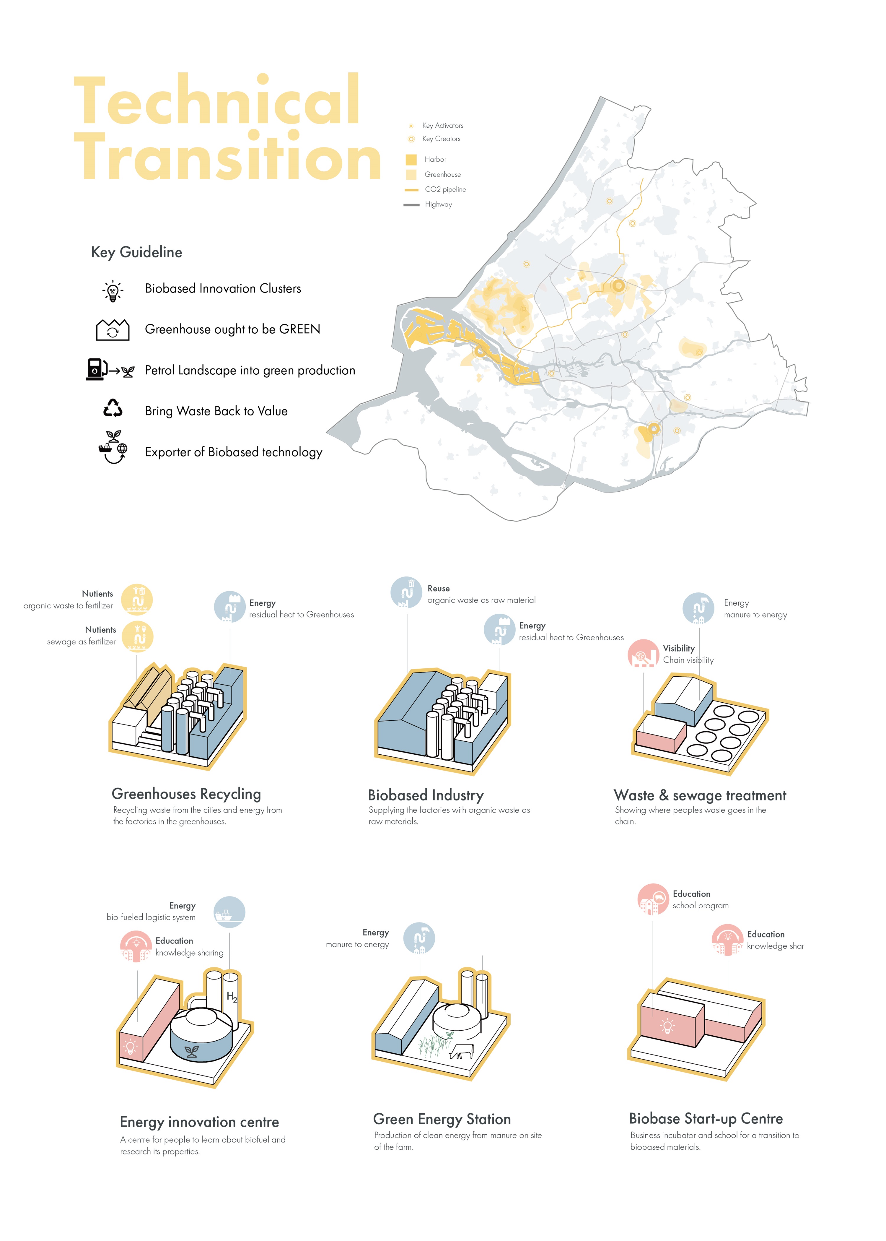 From port to the greenhouses production base, Dutch industrial sites would shift from an exporter of goods to an exporter of knowledge while supplying it with clean energy, creating a better South Holland while benefiting other countries.